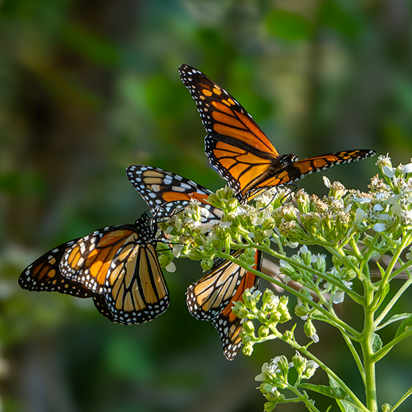 Monarch Butterflies nectaring on Frost Weed flowers before their migtation ot Mexico