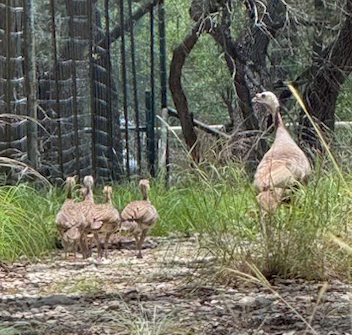 Turkey Hen with her poults trying to understand how to navigate the new Deer exclusion fence