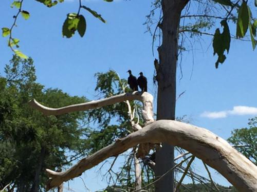 A pair of Black Vultures resting on a limb of a fallen cypress tree from 2015 flood damage.