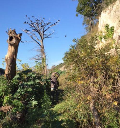 Large flock of Vutures in one of the few standing trees left after the flood along the river. Caretaker is taking a photo. The name of this area is "Vulture Gulch".