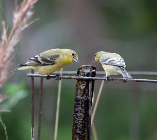 Goldfinches taking a drink of water