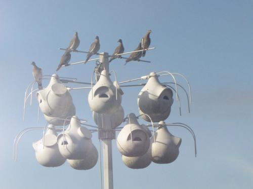 White Winged Doves resting on Purple Martin House