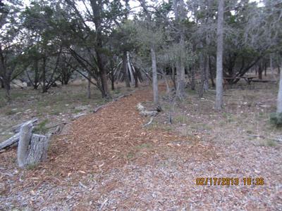 Christmas tree mulch is spread out onto the ground for a walking trail.