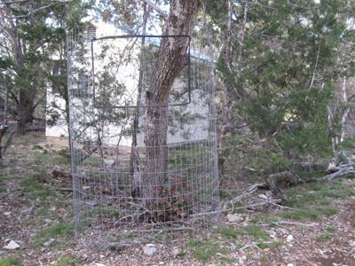 Red Oak tree caged to prevent deer browsing is coming back to life at the base