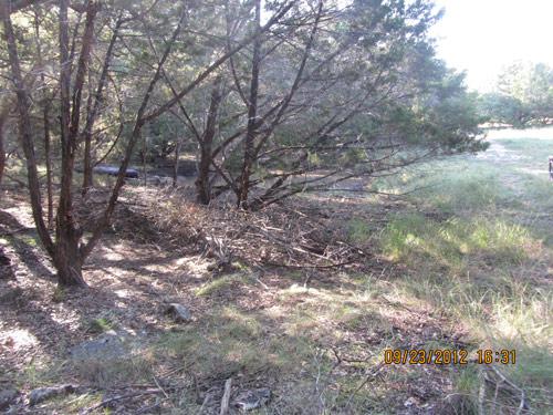 A berm is made of Juniper poles and brush to make a dam to catch dirt before water runs into pond in Bobcat Draw.