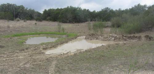The small pond on the left holds water, the small pond on the right has a rock floor and is designed to drain excess water.