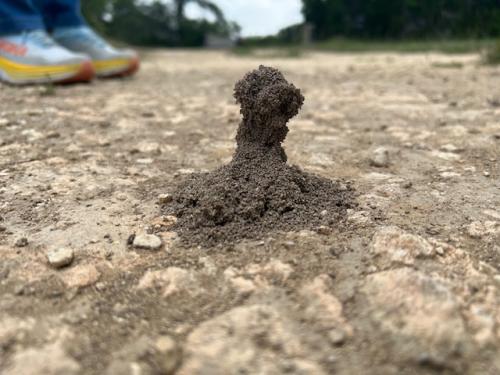 Odd shaped ant mound, eroded after rain event