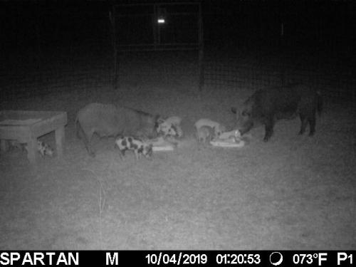 Feral Hogs observed in live trap, Sows and piglets.