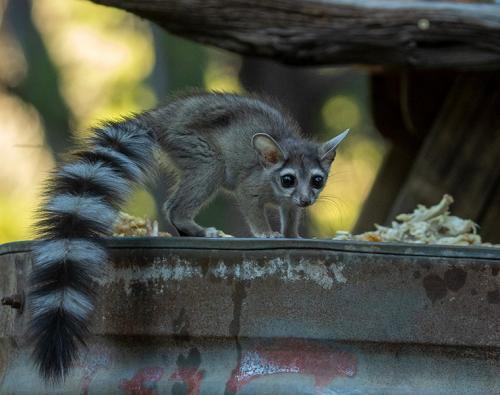 Ringtail Cat at chicken feeding tray for Foxes