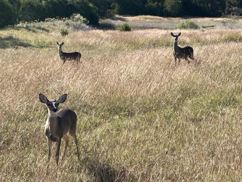The second day of Deer hunting season. Deer follow behind caretakers vehicle hoping for Milo.
