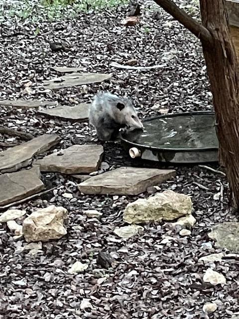 Possum getting a drink from one of the many water features provided by caretakers