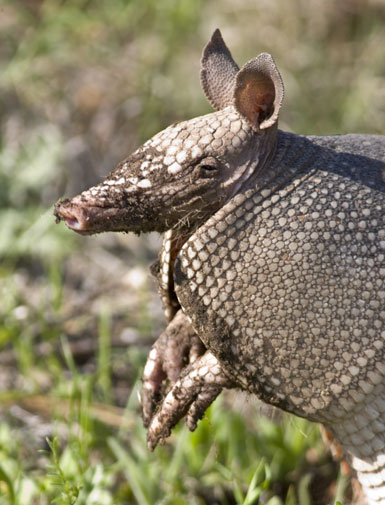 Nine-banded Armadillo on alert, listening