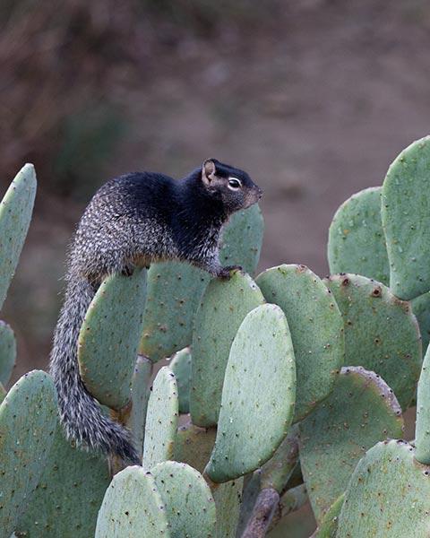 Rock Squirrel on spineless Prickly Pear Cactus