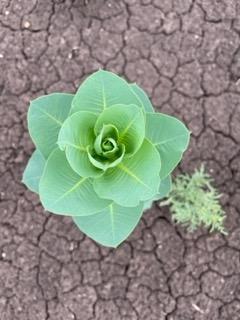 One of many Snow on the Prairie plants coming up in the dried pond bed