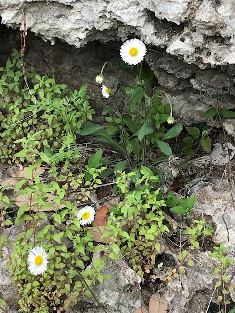 Fleabane flowers gropwing out of rcoky outcrop