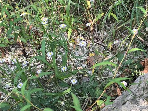 White Fleabane flowers growing in gravel river bank