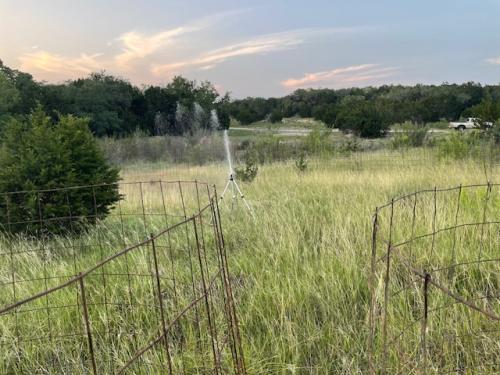 Watering newly planted 'Treefolks' trees on upland, caged from deer browse