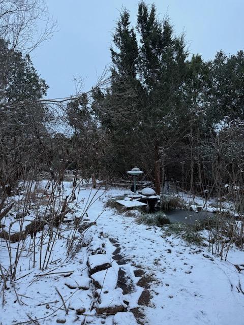 rare snow event and frozen pond