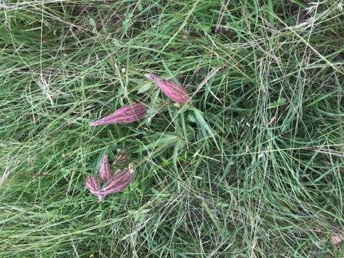 Antelope Horn mIlkweed flower, a host plant for Monarch Butterflies going to seed.