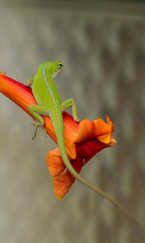Anole Lizard on Creeper Vine flower