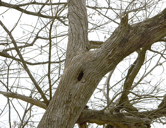 Bees have a hive in the hole of this Bald Cypress tree