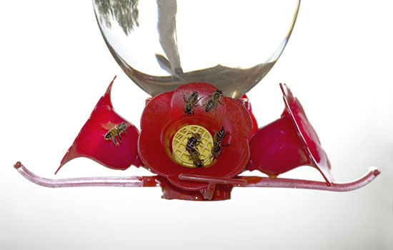 Bees at hummingbird feeder