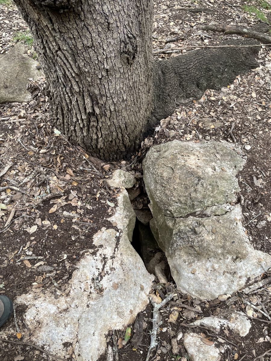 A Macabre scene. An 8 point Deer skull found tangled in trees with a piece of poly twine. Caretakers suspect that its antlers got entangled with the twine and it got further entangled in the trees as it tried to free itself. It likely broke its neck. Caretakers suspect that this is the type of twine used in home construction for building forms. Caretakers at Waterstone do not use this type of twine.