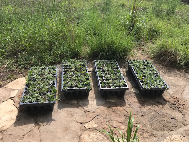 Recieved 5 flats of Antelope Horn seedlings from Monarch Watch to promote Milkweed plants for Butterflies. They were planted throughout the ranch and watered, but not many survived.