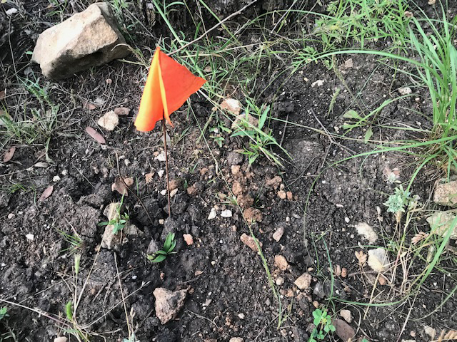 The orange flag is marking the location of the newly planted Antelope Horn.
