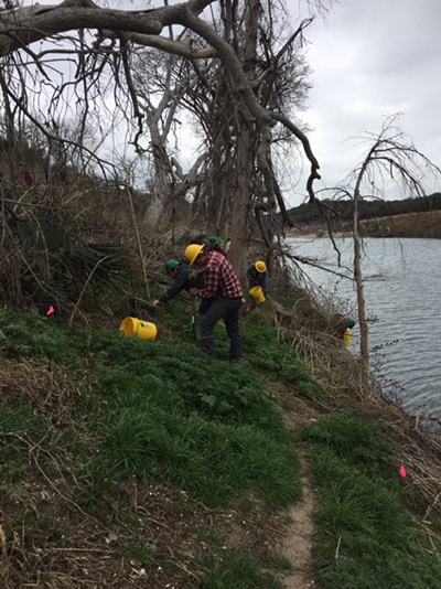 The pink flag marks one of the newly planted Bald Cypress seedlings.