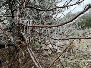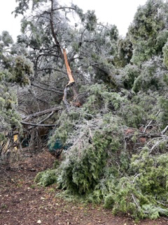 While the ice created a beautiful scene, many large tree limbs were lost and were later removed.