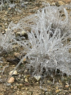 Frostweed ice crystal- this plant is named for this feature that cocurs in a deep freeze, when the water inside the stem of the plant freezes and expresses in interseting ice shapes.