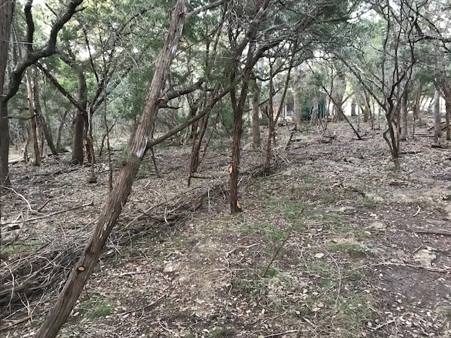 Dead branches of Ashe Juniper are cut and neatly arranged on contour for ersosion control.