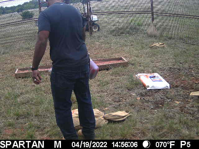 Caretaker putting out food in Hog trap