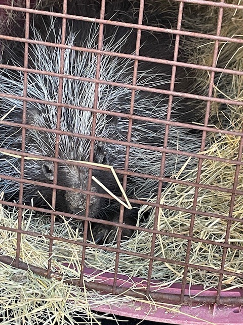Porcupine returned home in crate packed with straw for comfortable travel.
