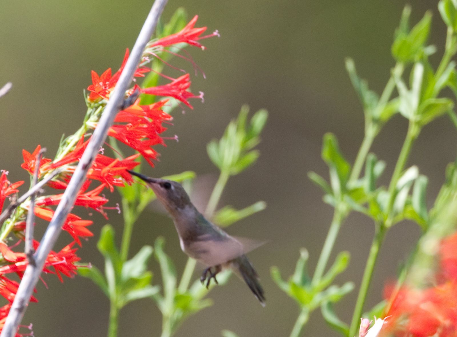Black-chinned Hummingbird nectaring on Cardinal flowers