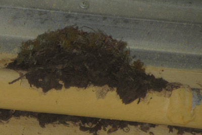 Eastern Phoebe nest on top of a pipe along the wall on the back porch.