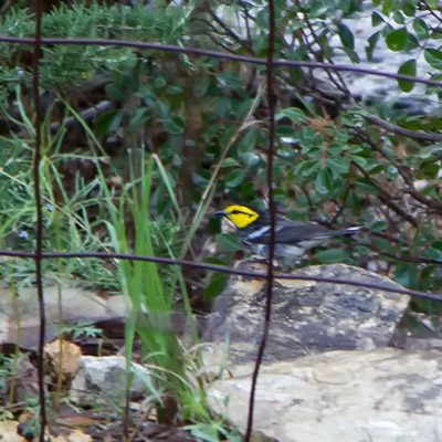 Saw Golden-cheeked Warbler at water spray