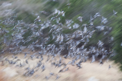 Large flock of 100 White-winged Doves scatter in a flurry when startled.