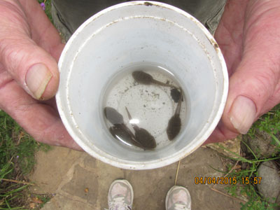 Some of the Leopard Frog Tadpoles relocated from drying up mud pond